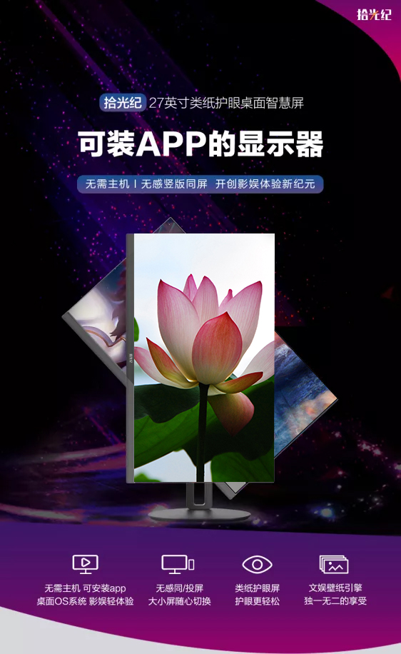 另外,拾光纪SA27D0桌面智慧屏应用市场中可自行下载云游戏应用,随时畅享3A大作,轻松自在享受云游戏带来的快乐。这款显示器还采用当下最流行的27英寸显示器尺寸,一屏全览满足影音娱乐、游戏、大屏办公等多个需求,开创影娱体验新纪元。